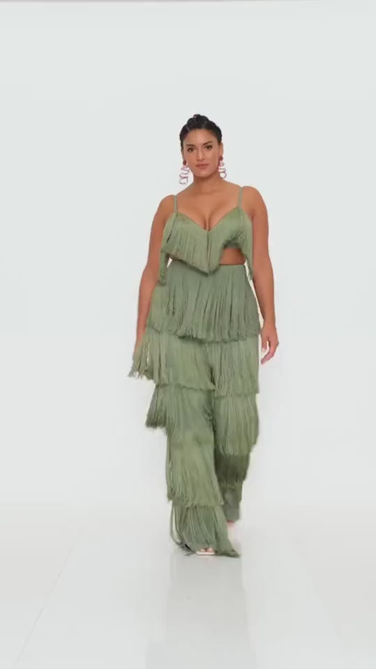 The fringed fabric has little to no stretch. Therefore, carefully measure your bust and waist before choosing.
